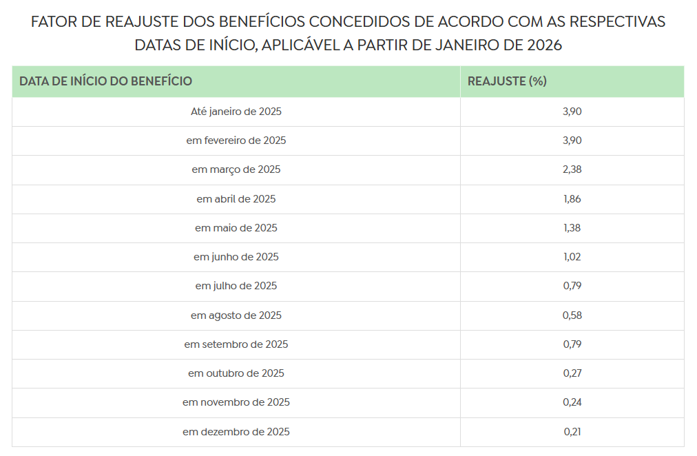 Os segurados da Previdência Social que recebem acima do salário mínimo terão os benefícios reajustados em 3,9%, conforme o Índice Nacional de Preços ao Consumidor (INPC). Os novos valores foram oficializados pela Portaria Interministerial MPS/MF nº 13, assinada nesta sexta-feira (09). O reajuste vale desde 1º de janeiro de 2026. O teto dos benefícios pagos pelo Instituto Nacional do Seguro Social (INSS) passa a ser de R$ 8.475,55 (antes era de R$ 8.157,41).
